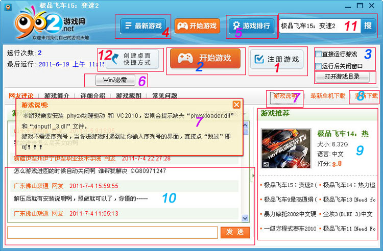 6、這個(gè)地方會(huì)放出一些游戲必需安裝的游戲環(huán)境或者游戲說(shuō)明,或者游戲所需注冊(cè)碼,或者一些特別需要操作的地方。