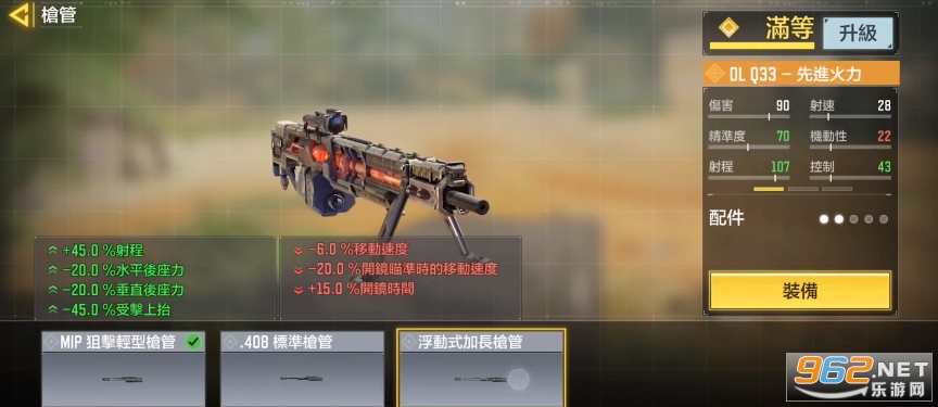 DL Q33是《使命召喚手游》中的一把半自動(dòng)狙擊步槍,具有較高的傷害和射程。它使用狙擊步槍彈藥,能夠有效地打擊遠(yuǎn)距離的敵人。DL Q33的優(yōu)點(diǎn)在于射程較遠(yuǎn),能夠有效地壓制敵方火力。同時(shí),它也具有較高的精度和穩(wěn)定性,適合玩家進(jìn)行精確射擊。此外,DL Q33還具有較高的機(jī)動(dòng)性,方便玩家在戰(zhàn)斗中快速移動(dòng)和切換目標(biāo)。