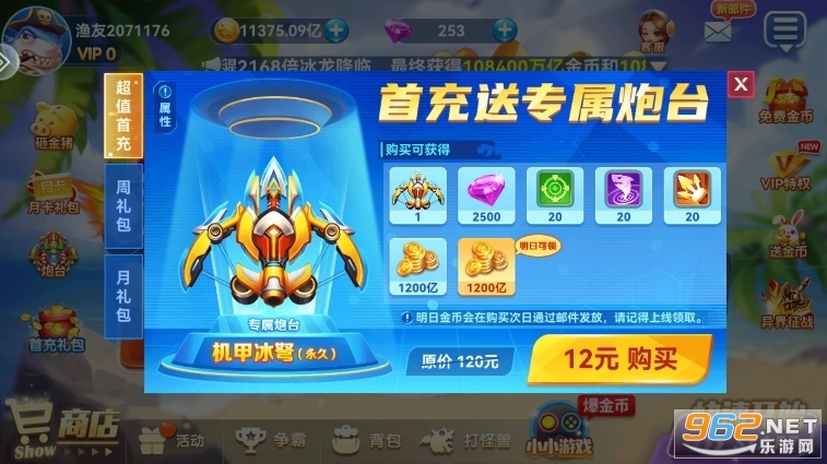 首次充值任意金額可獲得雙倍金幣、稀有道具或高級炮臺皮膚。