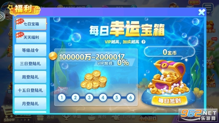 登錄就送海量金幣,3日好禮,收集各種法寶享強力補足金幣特權,充值加成特權。深海尋寶,捕魚賽事,多重福利領不停!