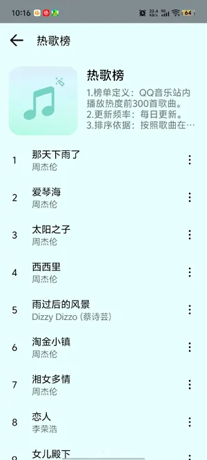 1.多維度歌曲榜單,內(nèi)置熱歌榜、新歌榜等多種排行榜單,助用戶把握流行趨勢,發(fā)現(xiàn)好音樂。