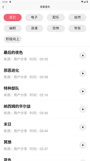 2.海量配樂資源也很出色,諸多背景音樂可選,適配不同場景。